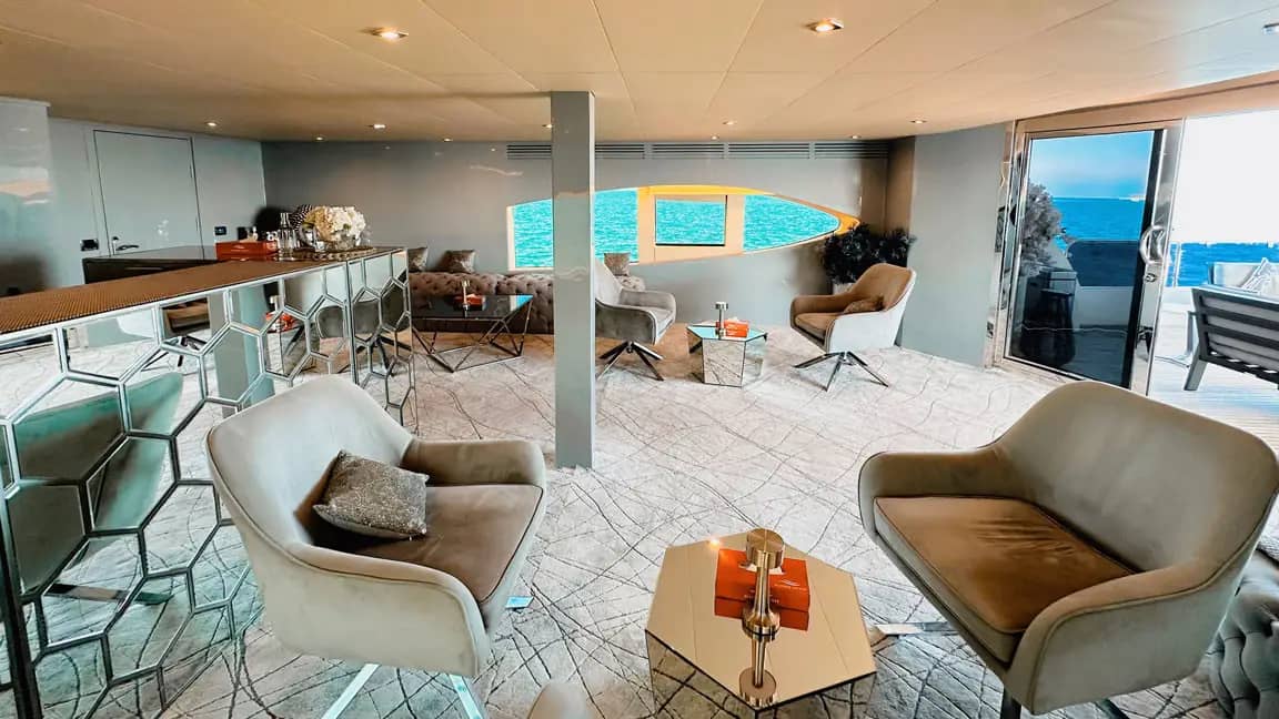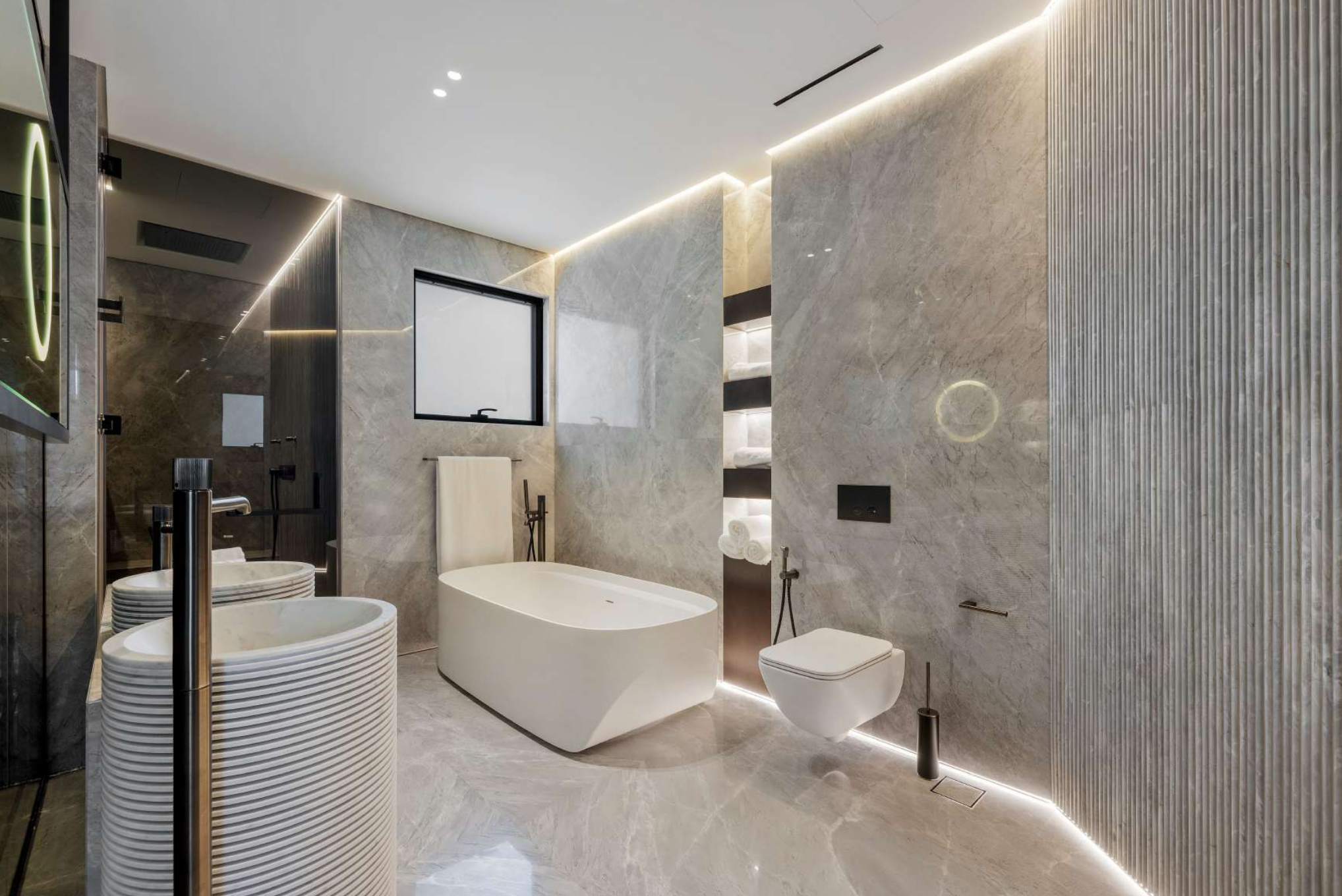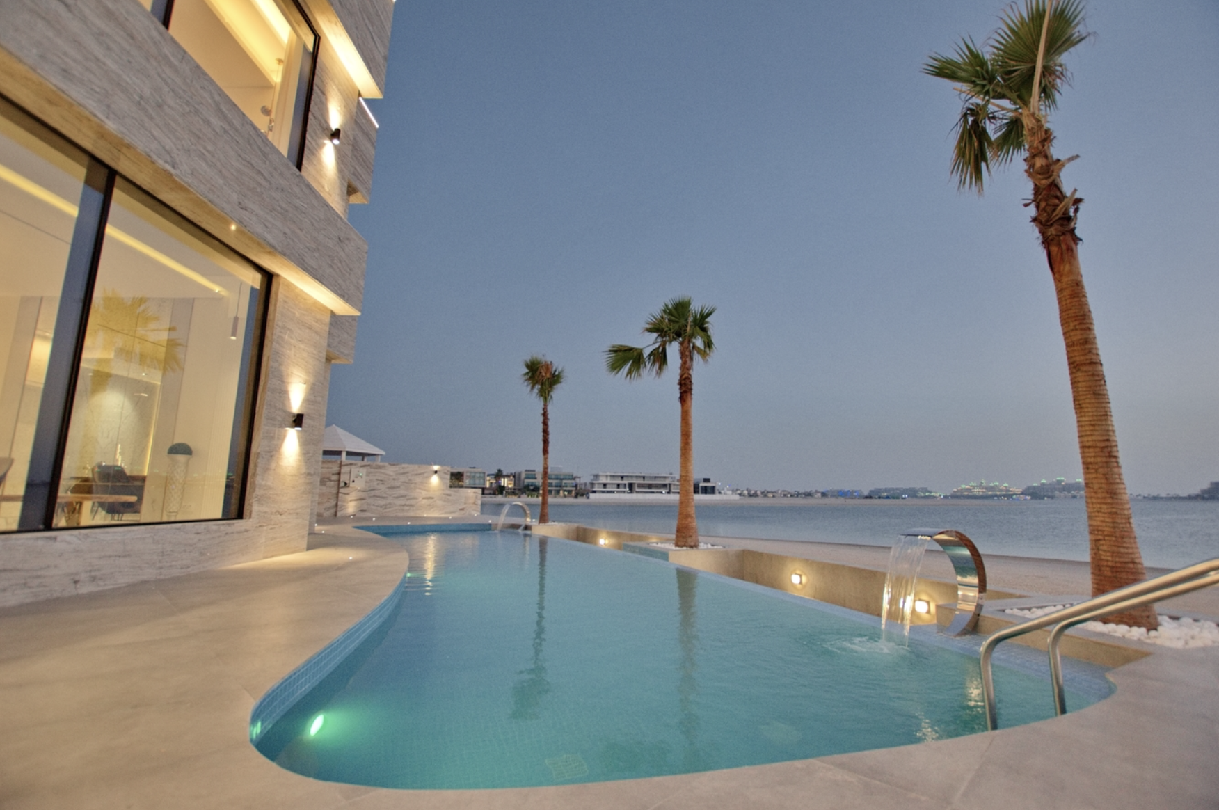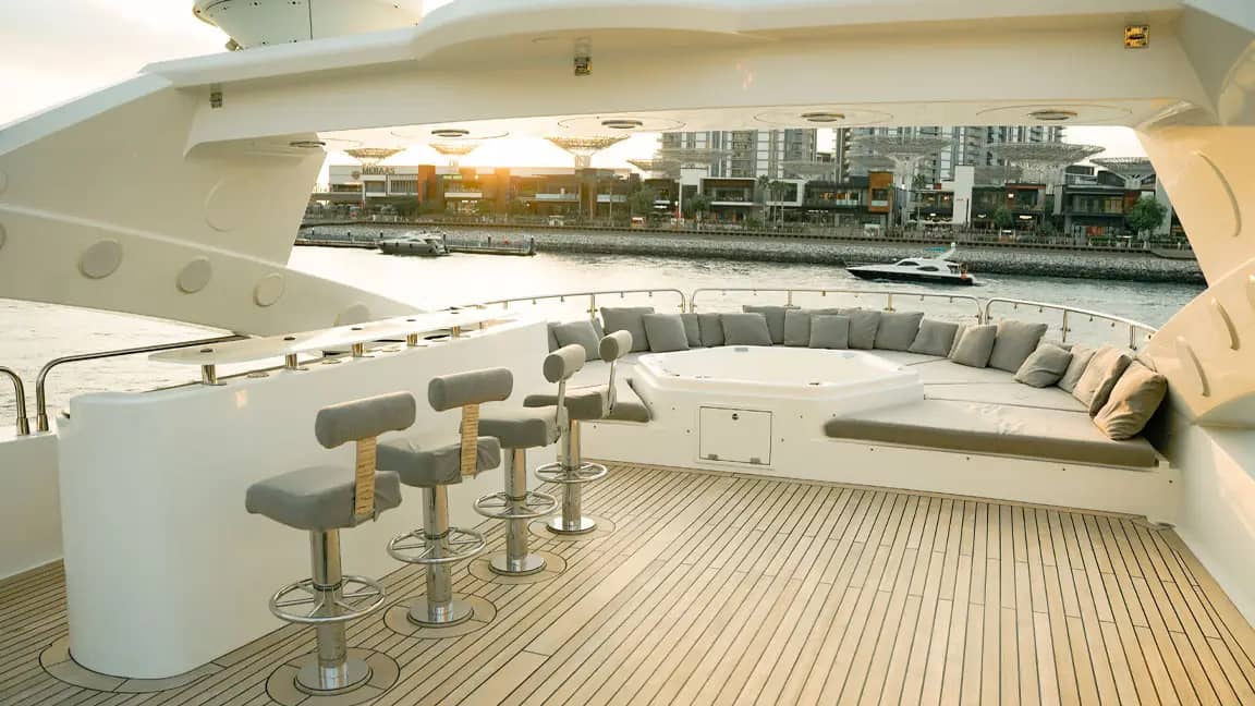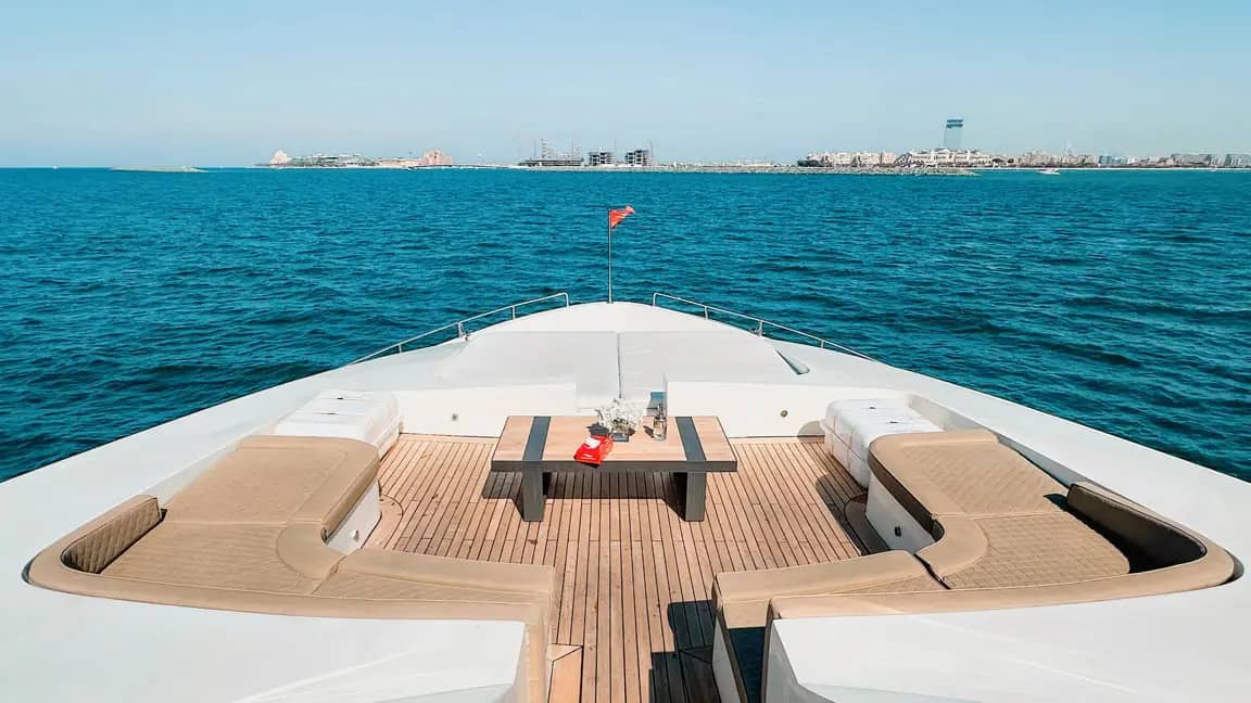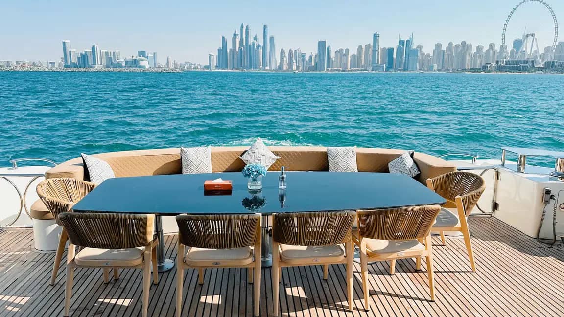 Cruise in style around the palm or anchor in front of the marina skyline.